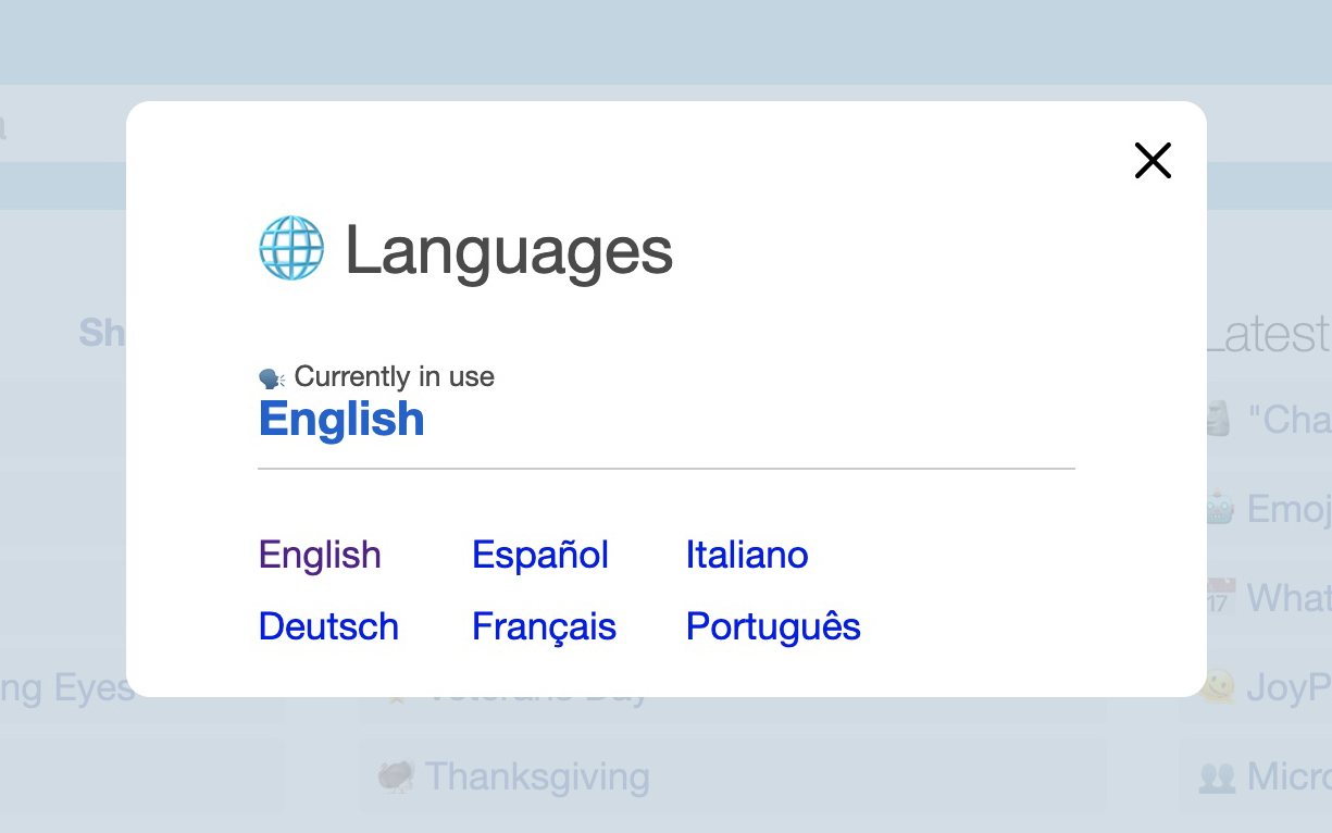 To change language across Emojipedia, use the "Languages" icon at the bottom of the left-hand navigation bar.
